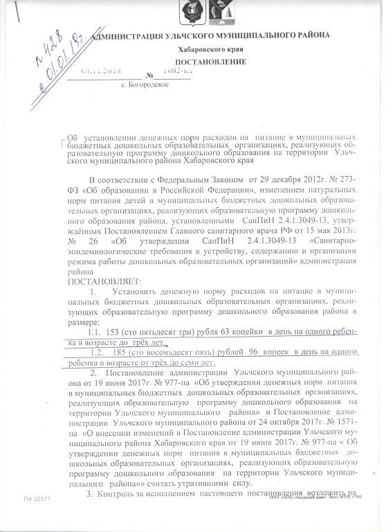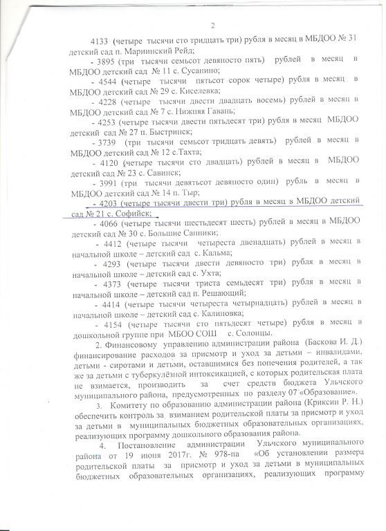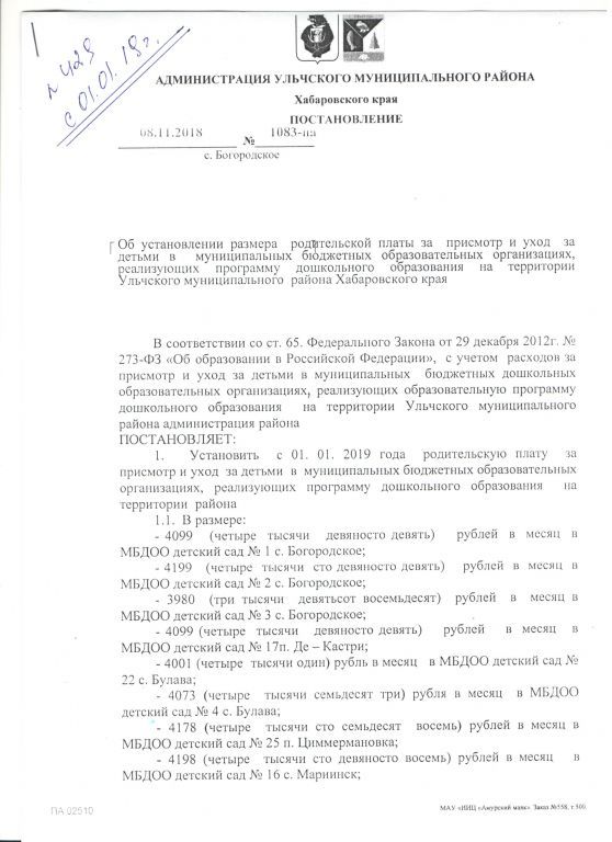 Документ об установлении размера платы, взимаемой с родителей (законных представителей)